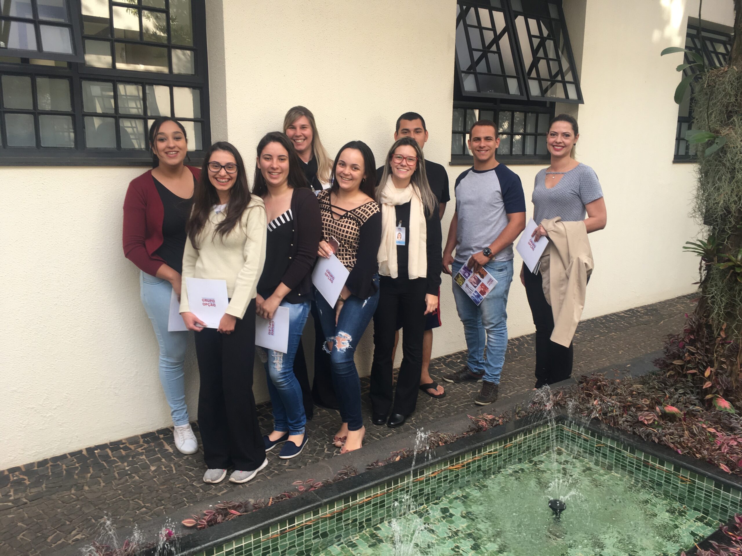 Os alunos do Programa de Aprendizagem Comercial em Serviços Administrativos do Senac de Rio Claro juntamente com a professora Jaqueline Ferrarini Rios estiveram visitando o Grupo Opção e puderam conhecer o dia-a-dia dos departamentos da empresa. A psicóloga do Grupo Opção, Katia Terrabuio, acompanhou a visita dos jovens e realizou uma palestra sobre Mercado de Trabalho.